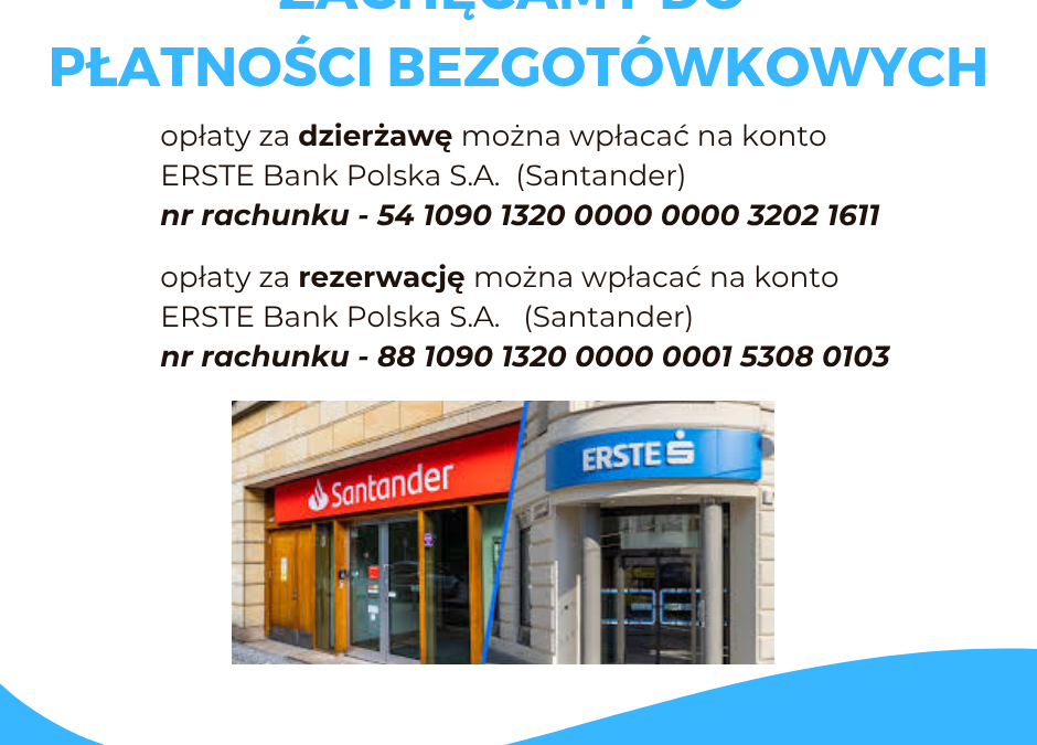 Opłaty za dzierżawę  można wpłacać na konto: Erste  Bank Polska