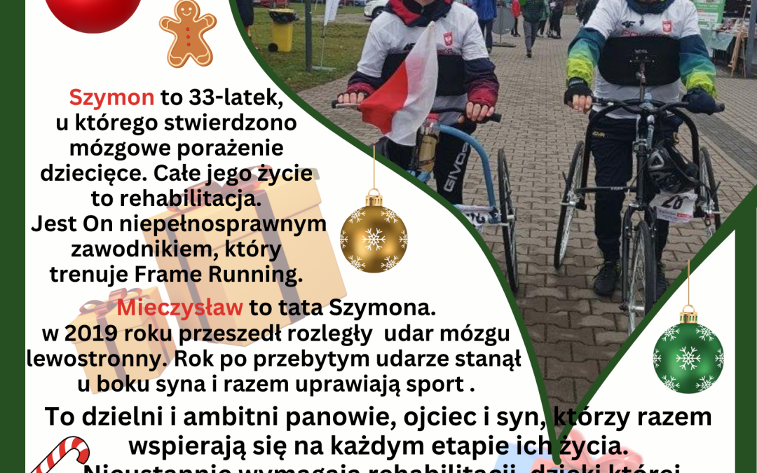 Wzorem lat ubiegłych, w sobotę 6 grudnia 2025 od godz. 9:00 do 12:00 , na targowisku miejskim nr 1 odbędzie się impreza charytatywna pt. „Każdy może być Mikołajem”. Tym razem zbieramy dla 33 letniego Szymona i jego taty Mieczysława podopiecznych Fundacji „Złotowianka”. To dzielni panowie , którzy razem się wspierają na każdym etapie życia i nieustannie potrzebują rehabilitacji. Wspólnie uprawiają Frame Running jest to bieganie przy pomocy „mobilera” specjalnego trójkołowego roweru. Razem trenują, rywalizują, jeżdżą na zawody dla osób niepełnosprawnych i stają obok siebie na podium. Szymon w 2024 roku zdobył złoty medal w Międzynarodowych Mistrzostwach w Dani w biegu na 100m Open. W tym dniu odbędzie się kiermasz ciast i ciasteczek, licytacje fantów, kolędowanie oraz spotkanie z Mikołajem. Przez cały czas imprezy odbywać się będzie zbiórka pieniędzy do puszek kwestowych.